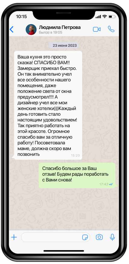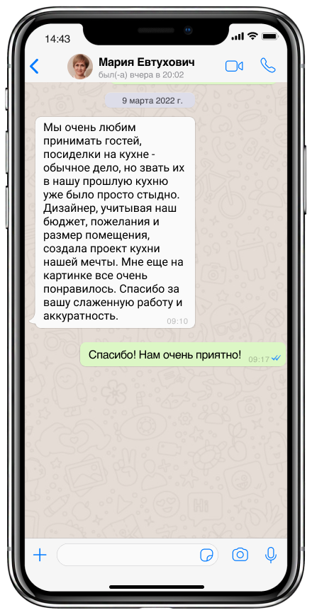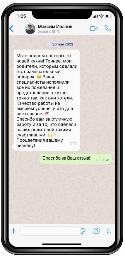 Закажите выезд замерщика на дом. Он измерит вашу кухню, покажет образцы, уточнит пожелания и назовет стоимость готового проекта. Это бесплатно и ни к чему вас не обязывает. Оставьте свои контактные данные