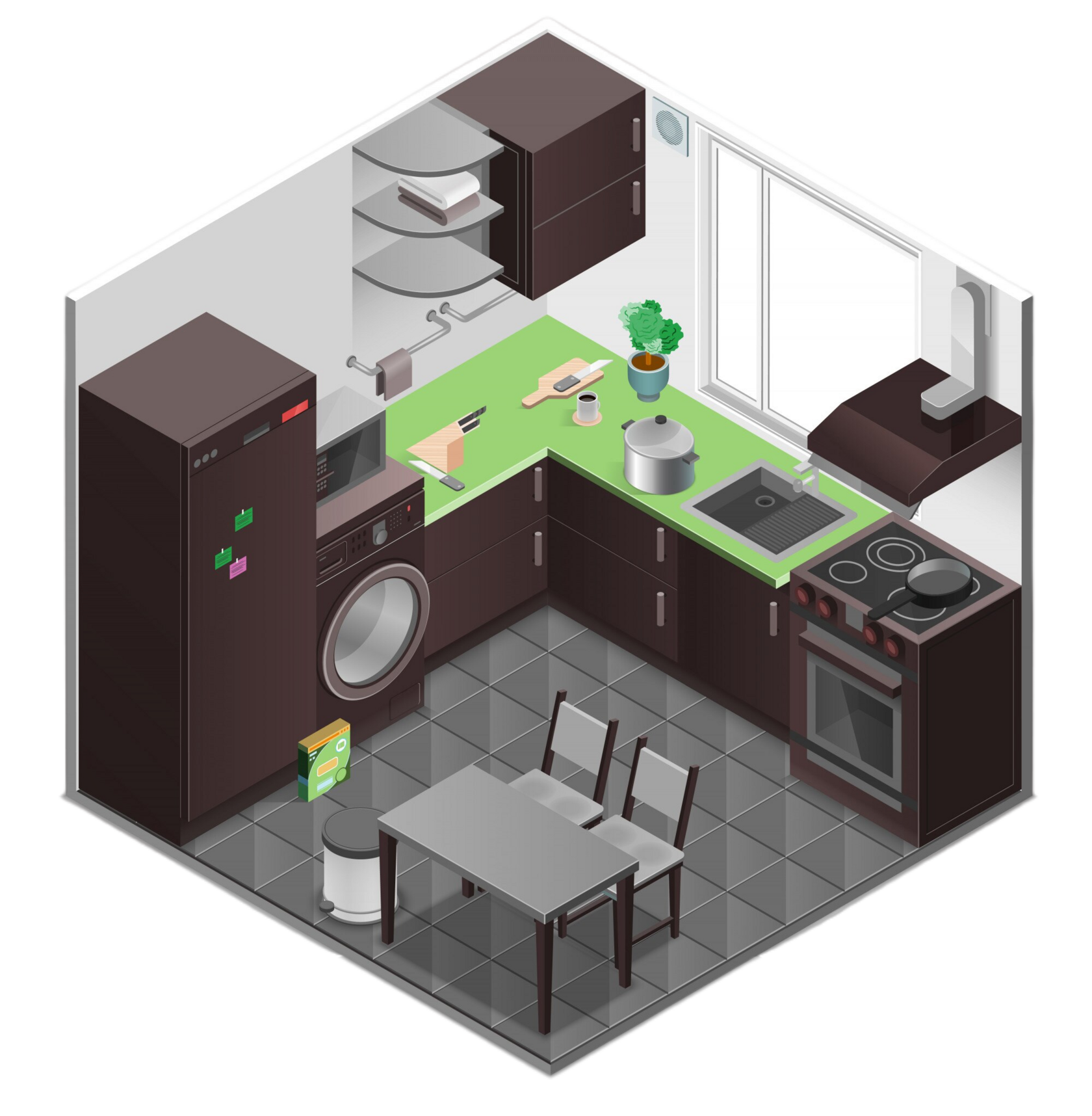 Создаст 2D-проект кухни по размерам Вашего помещения с учетом функциональных особенностей Вашей кухни